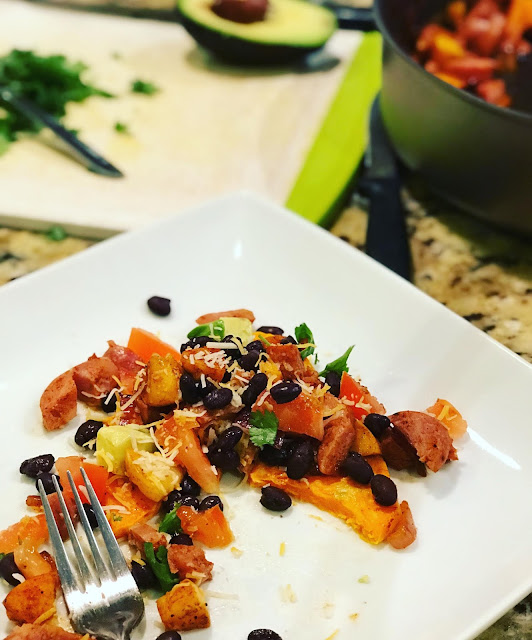 - 3 While roasting sweet potatoes, brown ground turkey in a skillet over medium heat. Once cooked